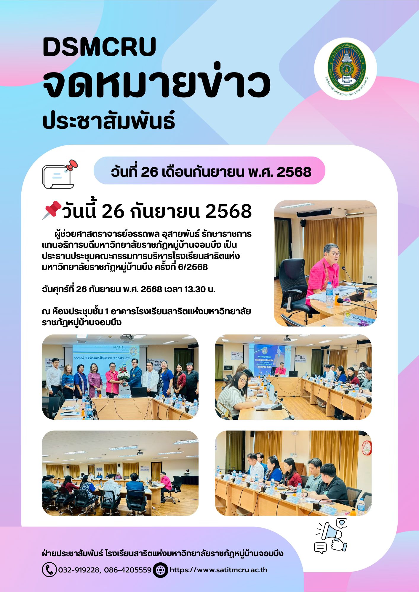 ประชุมคณะกรรมการบริหารโรงเรียนสาธิตแห่งมหาวิทยาลัยราชภัฏหมู่บ้านบึง ครั้งที่ 6/2568