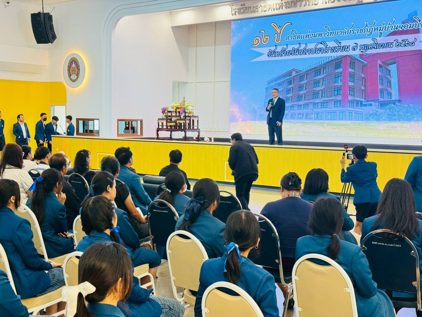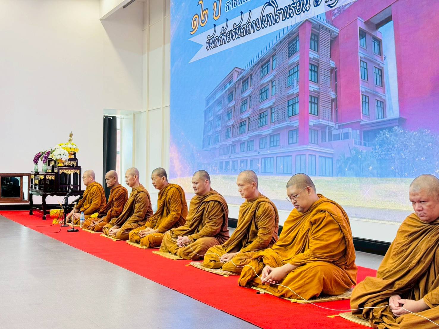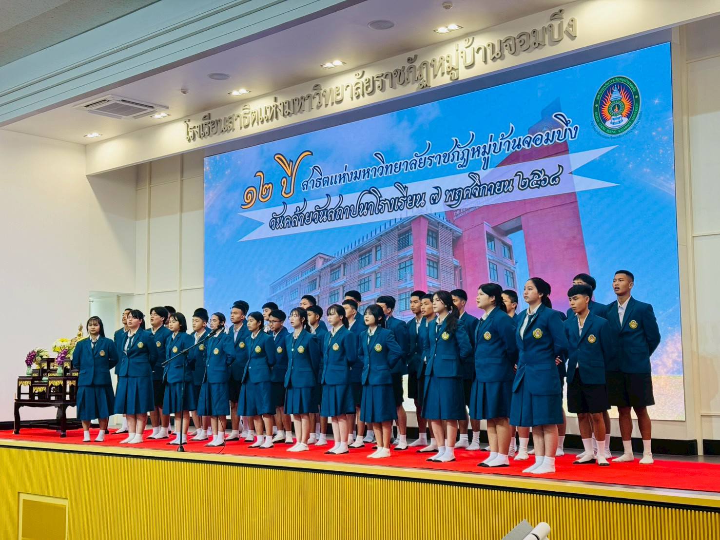 โรงเรียนสาธิตแห่งมหาวิทยาลัยราชภัฏหมู่บ้านจอมบึง ครบรอบ 12 ปี แห่งความภาคภูมิใจ วันที่ 11 พฤศจิกายน 2568 ได้จัดพิธีสงฆ์เจริญพระพุทธมนต์เนื่องใน วันคล้ายวันสถาปนาโรงเรียน ครบรอบ 12 ปี โดยได้รับเกียรติจาก ผู้ช่วยศาสตราจารย์ อรรถพล อุสายพันธ์ รักษาราชการแทนอธิการบดีมหาวิทยาลัยราชภัฏหมู่บ้านจอมบึง เป็นประธานในพิธี พร้อมด้วย นายเรืองชัย เนตรปฐมพร ประธานคณะกรรมการส่งเสริมกิจการมหาวิทยาลัย (คสม.) ผู้ช่วยศาสตราจารย์ ดร.ชัชวาล แอร่มหล้า รองอธิการบดี อาจารย์ ดร.บารมี ชูชัย คณบดีวิทยาลัยมวยไทยศึกษาและการแพทย์แผนไทย คณะผู้บริหาร อาจารย์ ดร.นพดล ทุมเชื้อ ผู้อำนวยการโรงเรียนสาธิตฯ พร้อมคณะครู อาจารย์ ผู้ปกครอง และนักเรียน ร่วมในพิธีด้วยบรรยากาศแห่งความอบอุ่นและศรัทธา