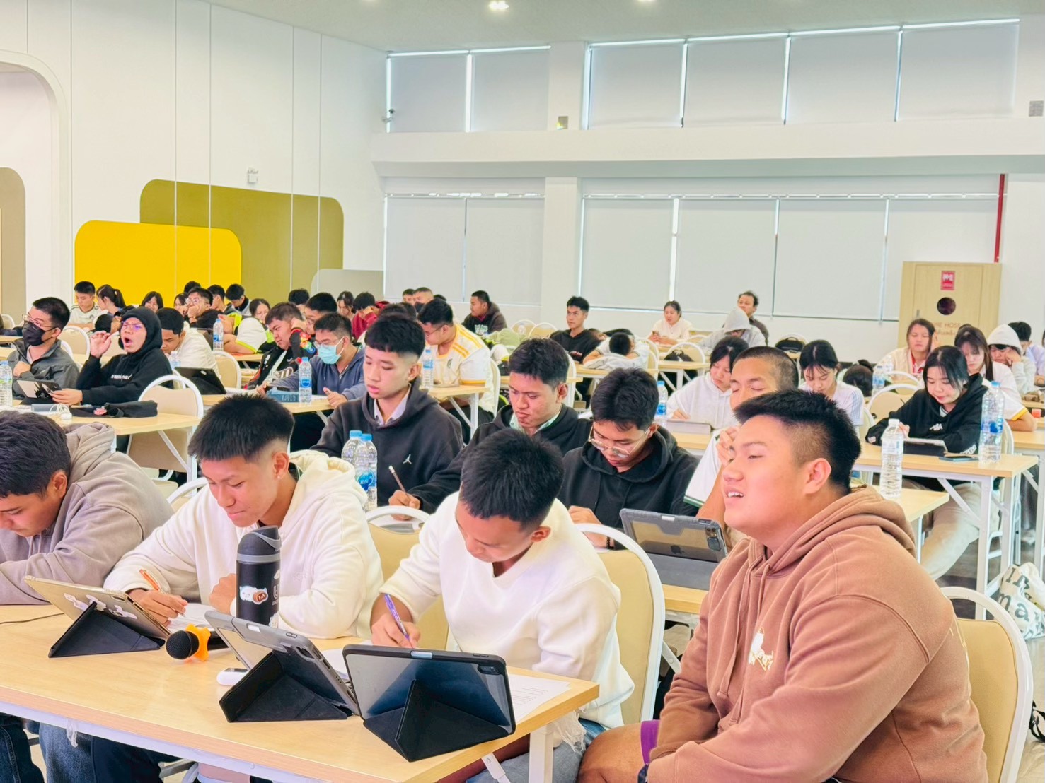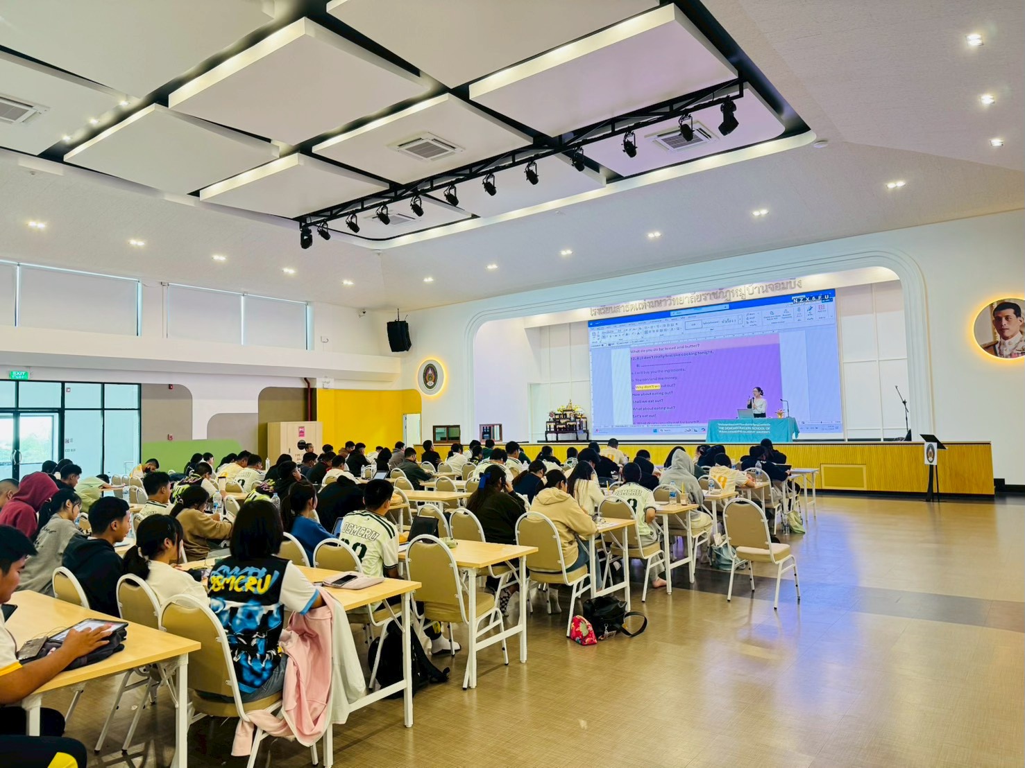 ต่างระดับ แต่หัวใจเดียวกันของนักเรียนชั้นมัธยมศึกษาปีที่ 5 และ 6 ติวเข้ม TGAT–TPAT เตรียมพร้อมทุกสนามสอบ”  กับโครงการพัฒนาศักยภาพในการสอบแข่งขัน ครั้งที่ 1 (TGAT/TPAT) บรรยายให้ความรู้วิชา TGAT1 วิชาสื่อสารภาษาอังกฤษ โดยวิทยากร ท่านอาจารย์ดุจปรารถนา อรุณฉาย ในวันที่ 21 พฤศจิกายน 2568 ณ ห้องประสชุมราชาวดี ชั้น 4 โรงเรียนสาธิตแห่งมหาวิทยาลัยราชภัฏหมู่บ้านจอมบึง