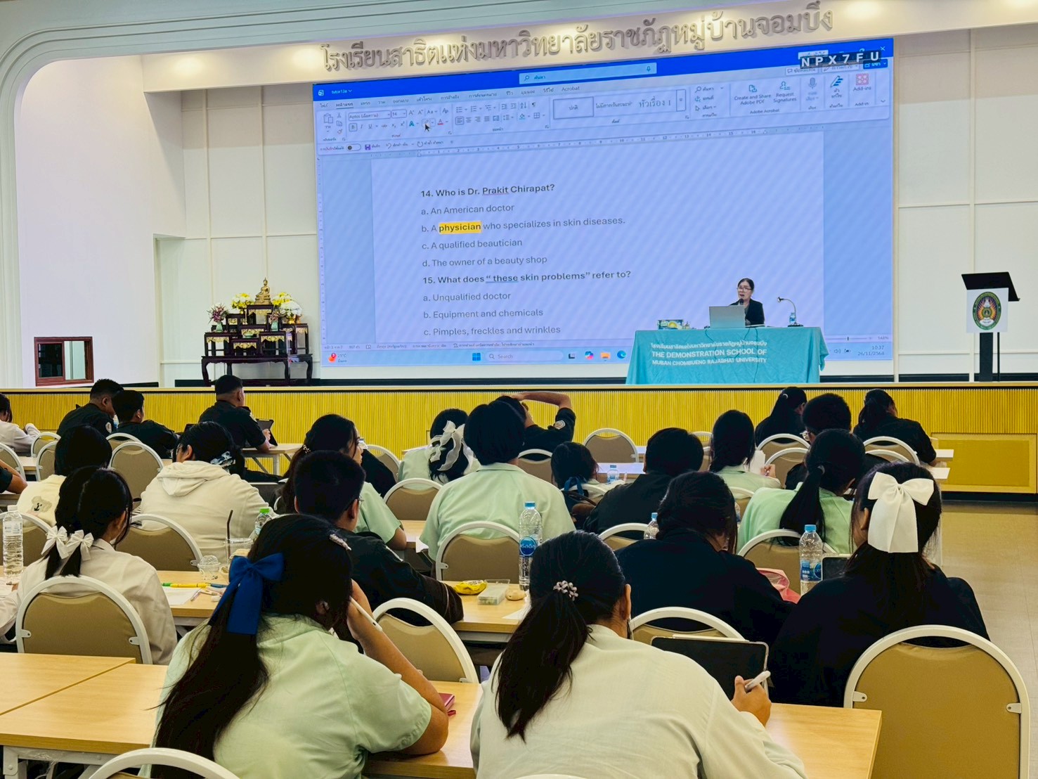โรงเรียนสาธิตแห่งมหาวิทยาลัยราชภัฏหมู่บ้านจอมบึง จัดโครงการ พัฒนาศักยภาพในการสอบแข่งขันนักเรียนชั้นมัธยมศึกษาปีที่ 6 (TGAT/TPAT) ครั้งที่ 2 TGAT1 การสื่อสารภาษาอังกฤษ" เพื่อเตรียมความพร้อมให้นักเรียนมีศักยภาพทางวิชาการ และสามารถเข้าศึกษาต่อ โดยวิทยากร ท่านอาจารย์ดุจปรารถนา อรุณฉาย ในวันที่ 26 พฤศจิกายน 2568  เวลา 9:00 - 12:00 น. ณ ห้องประชุมราชาวดี ชั้น4 โรงเรียนสาธิตแห่งมหาวิทยาลัยราชภัฏหมู่บ้านจอมบึง