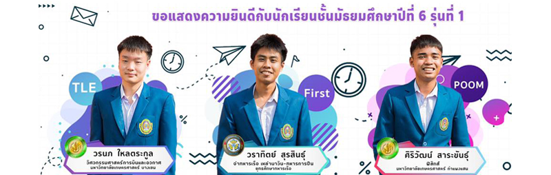 | 15. | ณัฐภาส | เรืองวิริยะชัย | มัธยมศึกษาปีที่ 6 รุ่นที่ 1 | เทคโนโลยีสารสนเทศ | มหาวิทยาลัยเกษตรศาสตร์ กำแพงแสน |