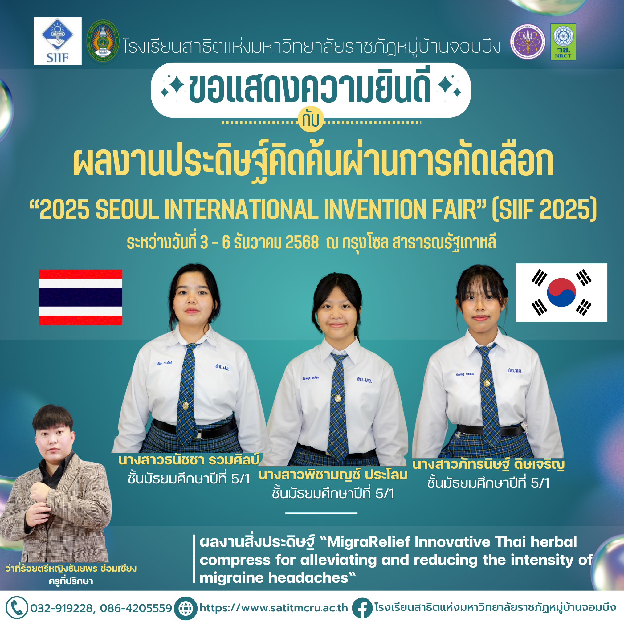 “2025 Seoul International Invention Fair” (SIIF 2025) ระหว่างวันที่ 3 – 6 ธันวาคม 2568 ณ กรุงโซล สาธารณรัฐเกาหลี
