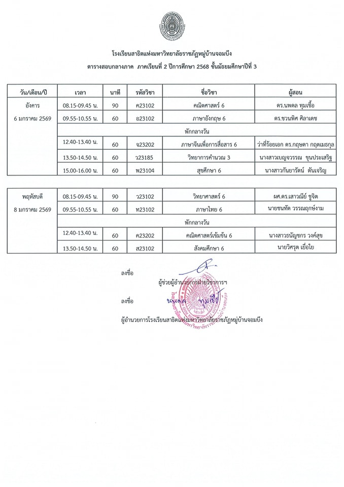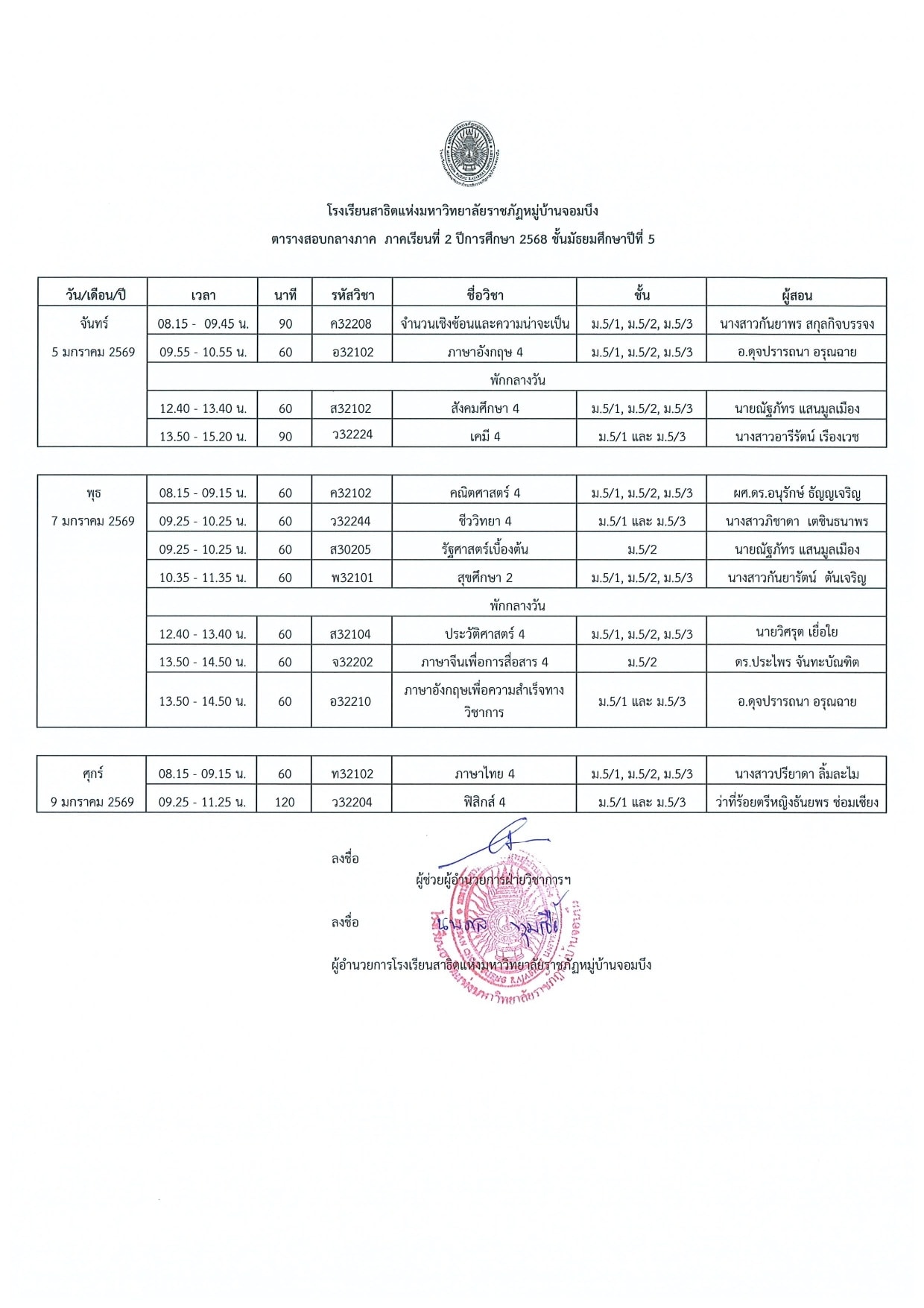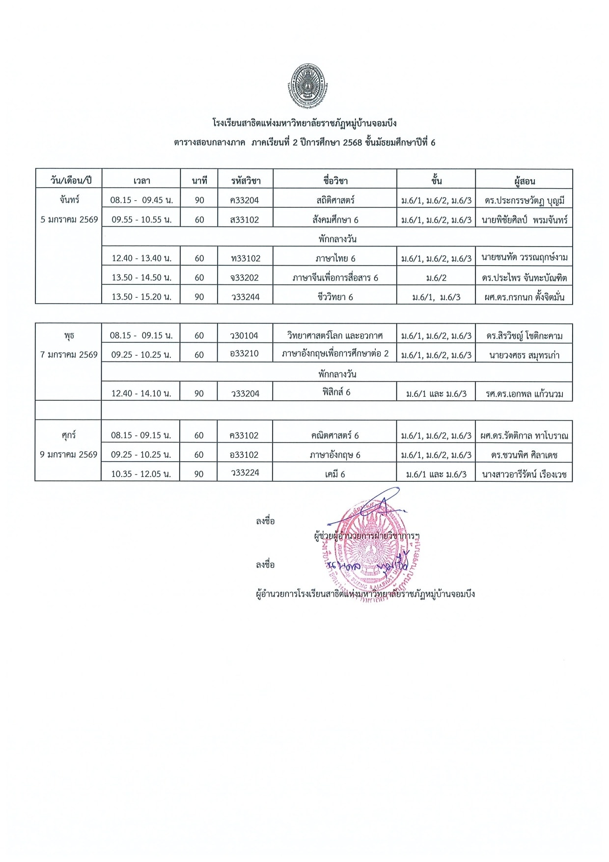 ตารางสอบกลางภาค ภาคเรียนที่ 2 ประจำปีการศึกษา 2568