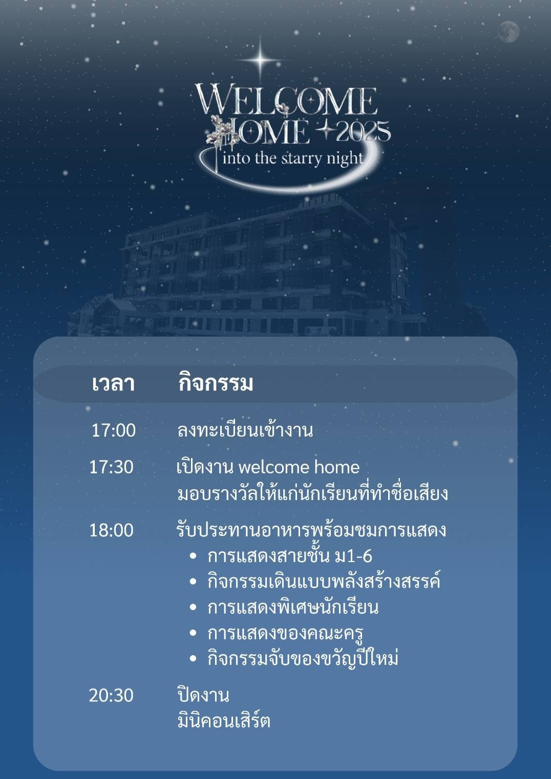 เรียนเชิญ ผู้ปกครอง นักเรียน และ ศิษย์เก่า ร่วมงาน DSMCRU Welcome Home 2025 “Into the Starry night”