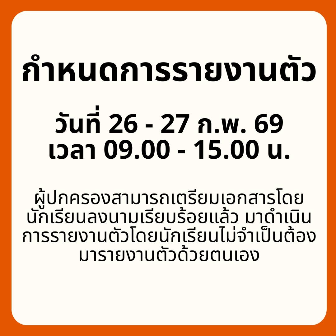 กำหนดการรายงานตัวนักเรียนชั้น ม.1 และ ม.4 ปีการศึกษา 2569 รอบคัดเลือก ทั่วไป