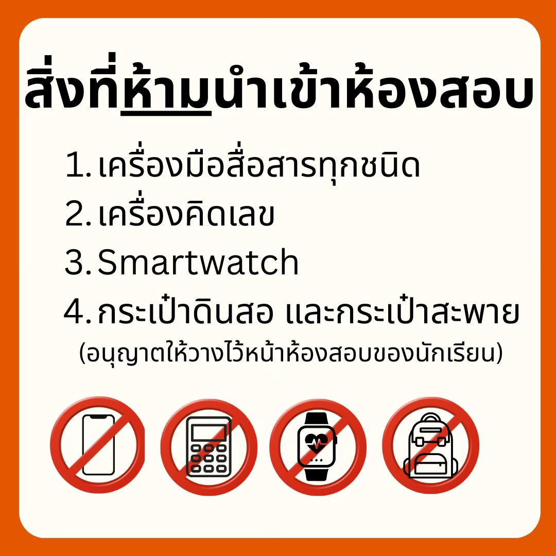 โดยห้องสอบและลำดับการเข้าสอบถือเอาจากเอกสารนี้เป็นสำคัญสิ่งที่ต้องนำมาด้วย